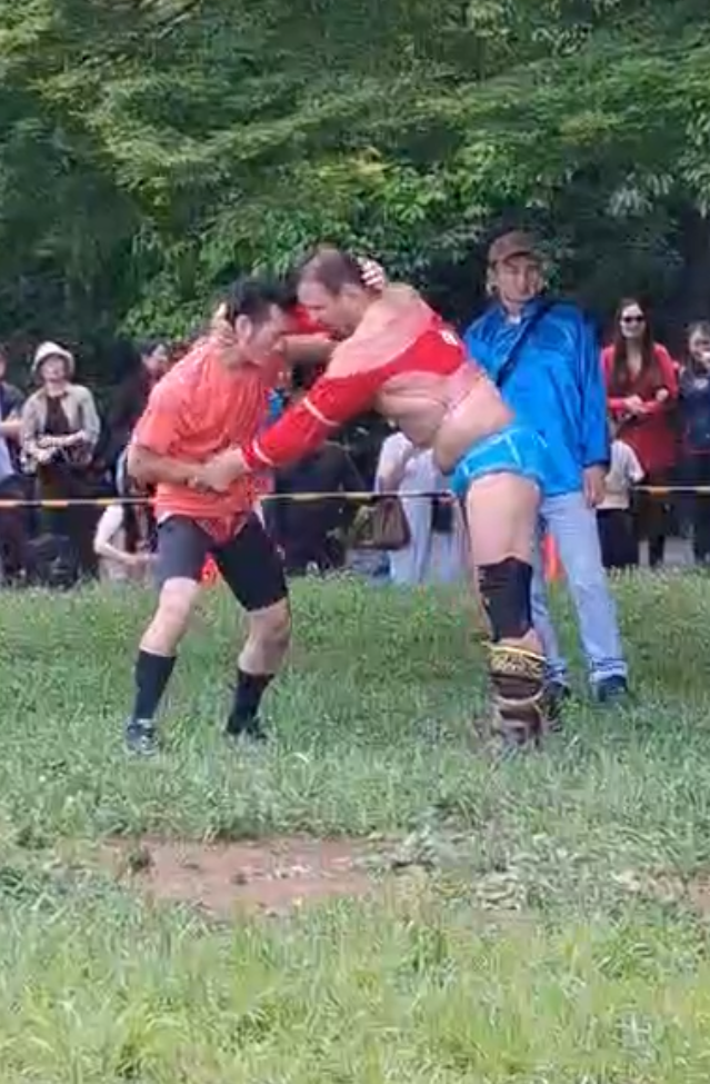 2025年5月にハワリンバヤルというモンゴルのお祭りがあって、そこでモンゴル相撲に挑戦しました。