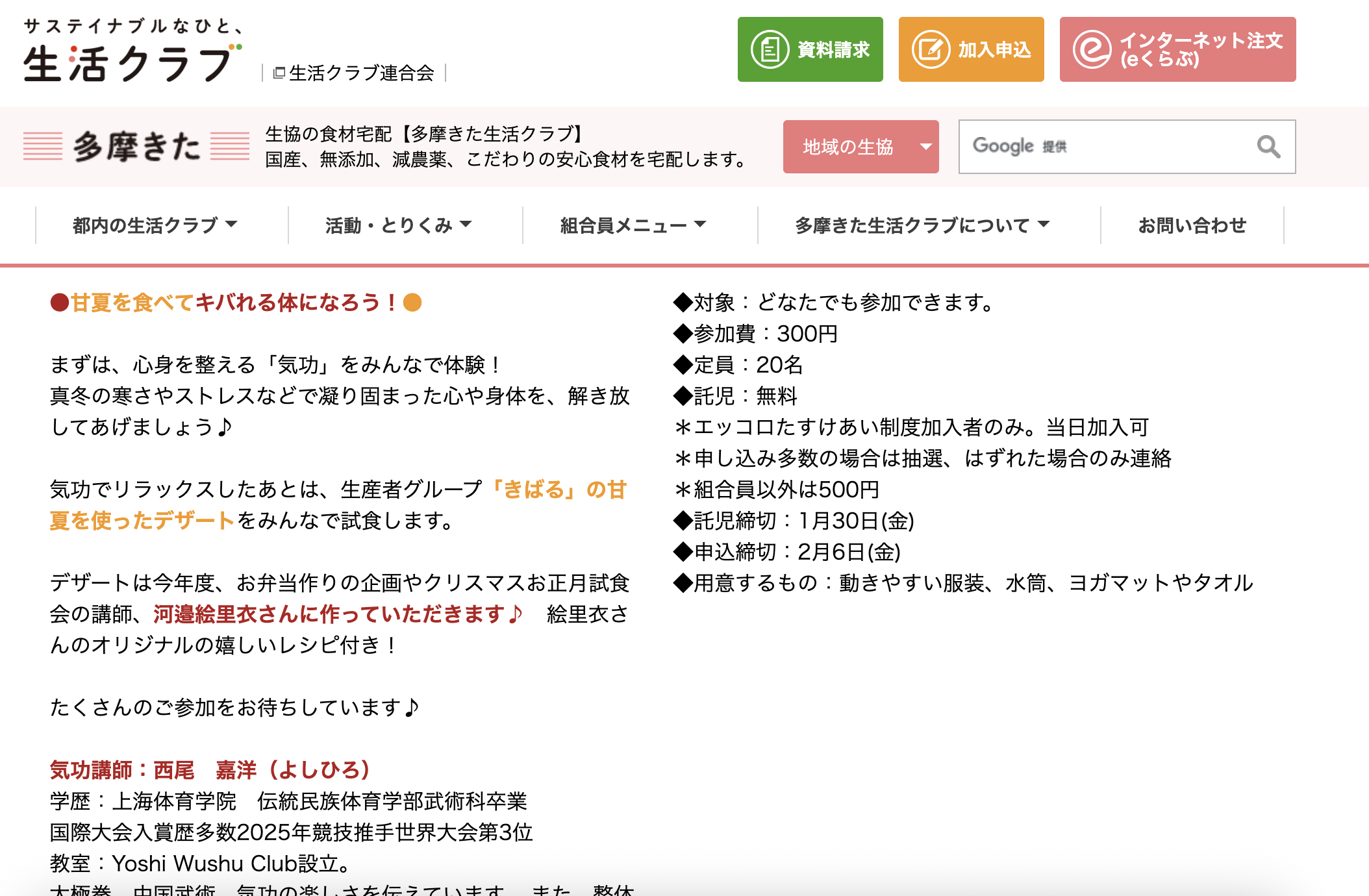 機会を提供して頂いた生活クラブ小平センターの皆様